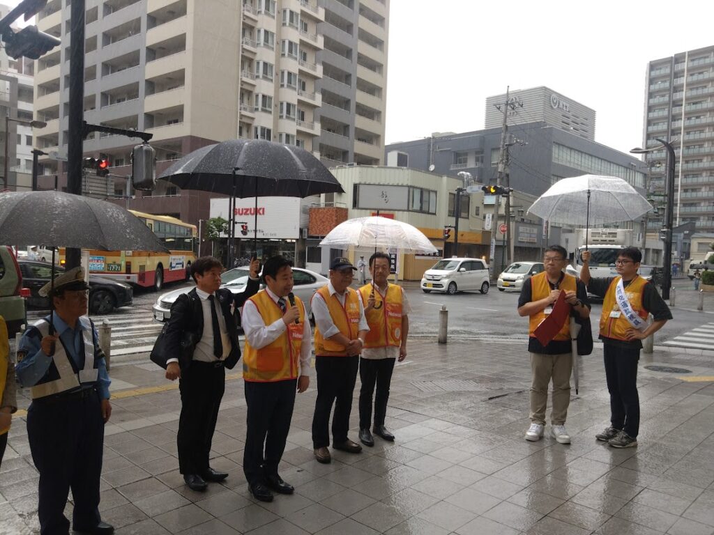生憎の雨の中でありましたが、山口市長、山本自治連会長、三上市民交流部長が激励にお越しくださいました。